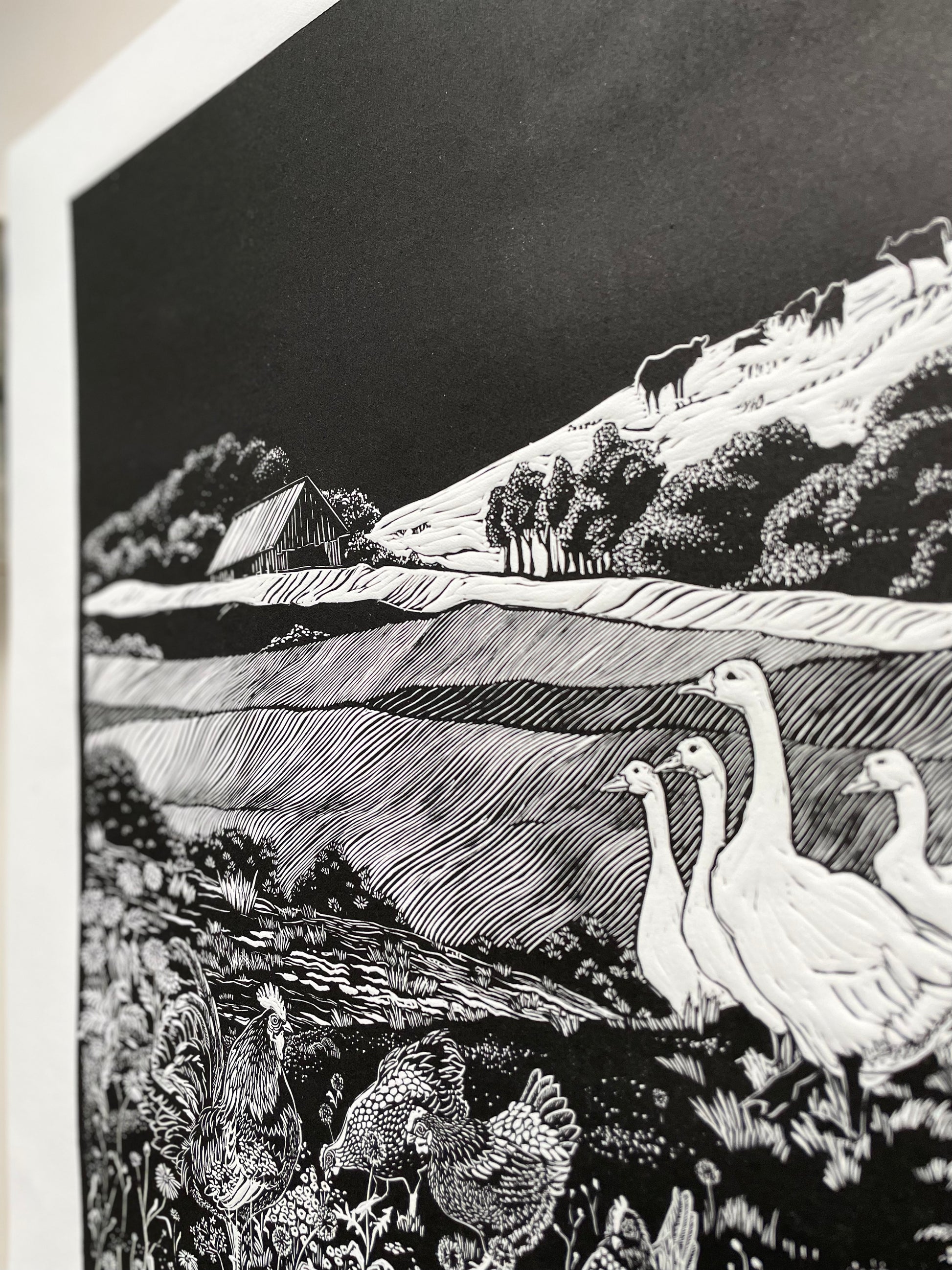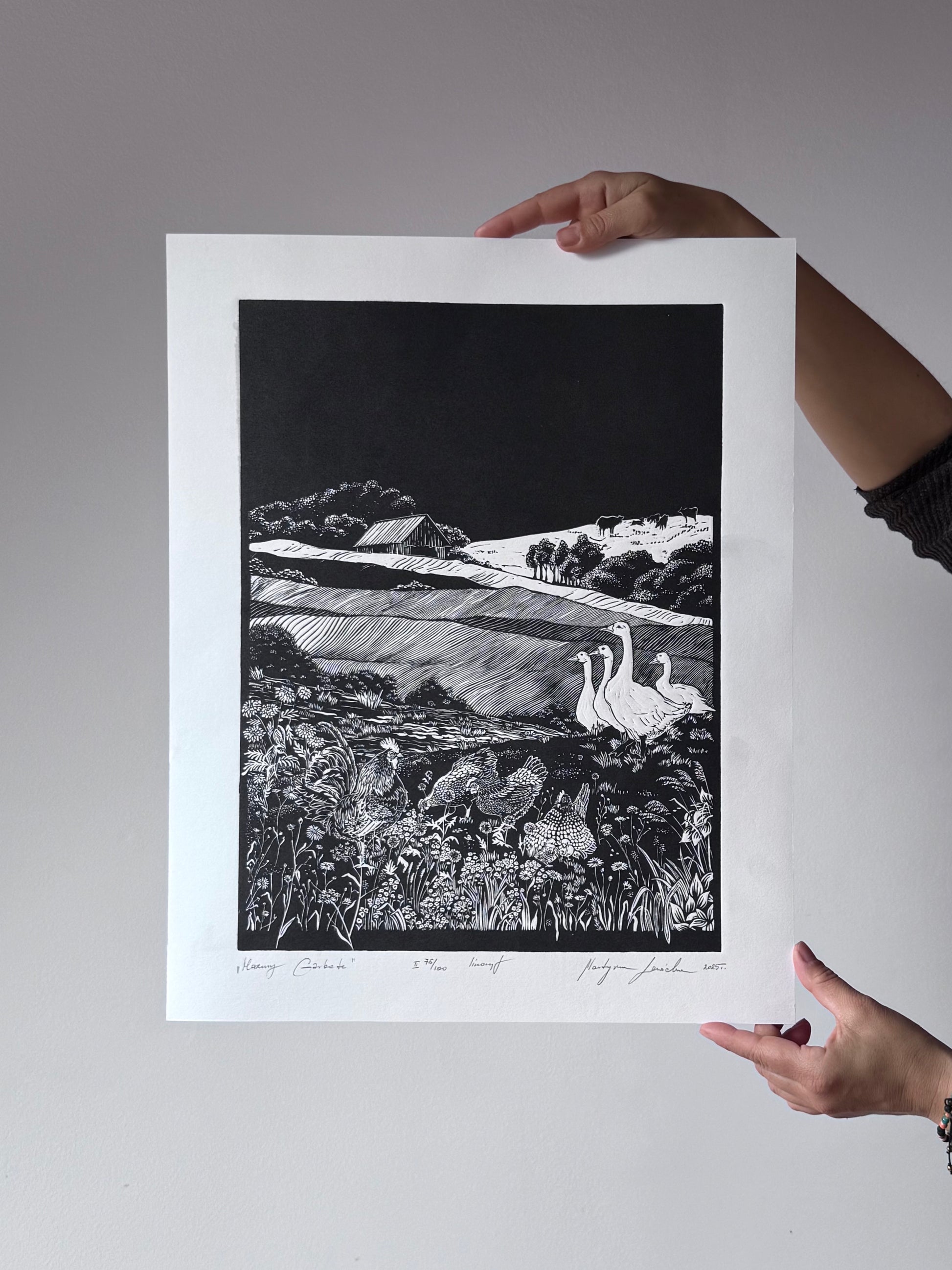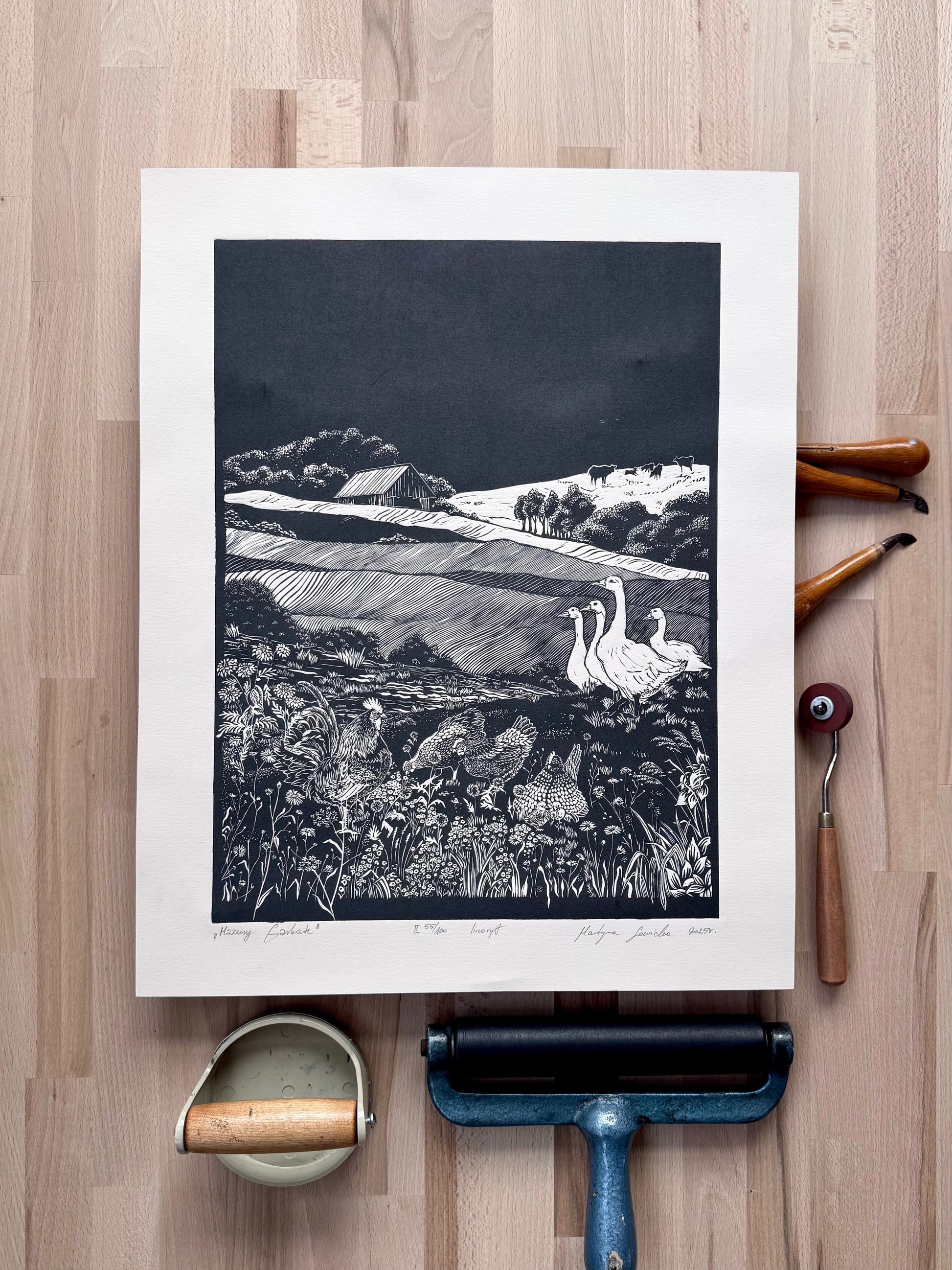 Linoryt pt. "Mazury Garbate" 40x50 cm